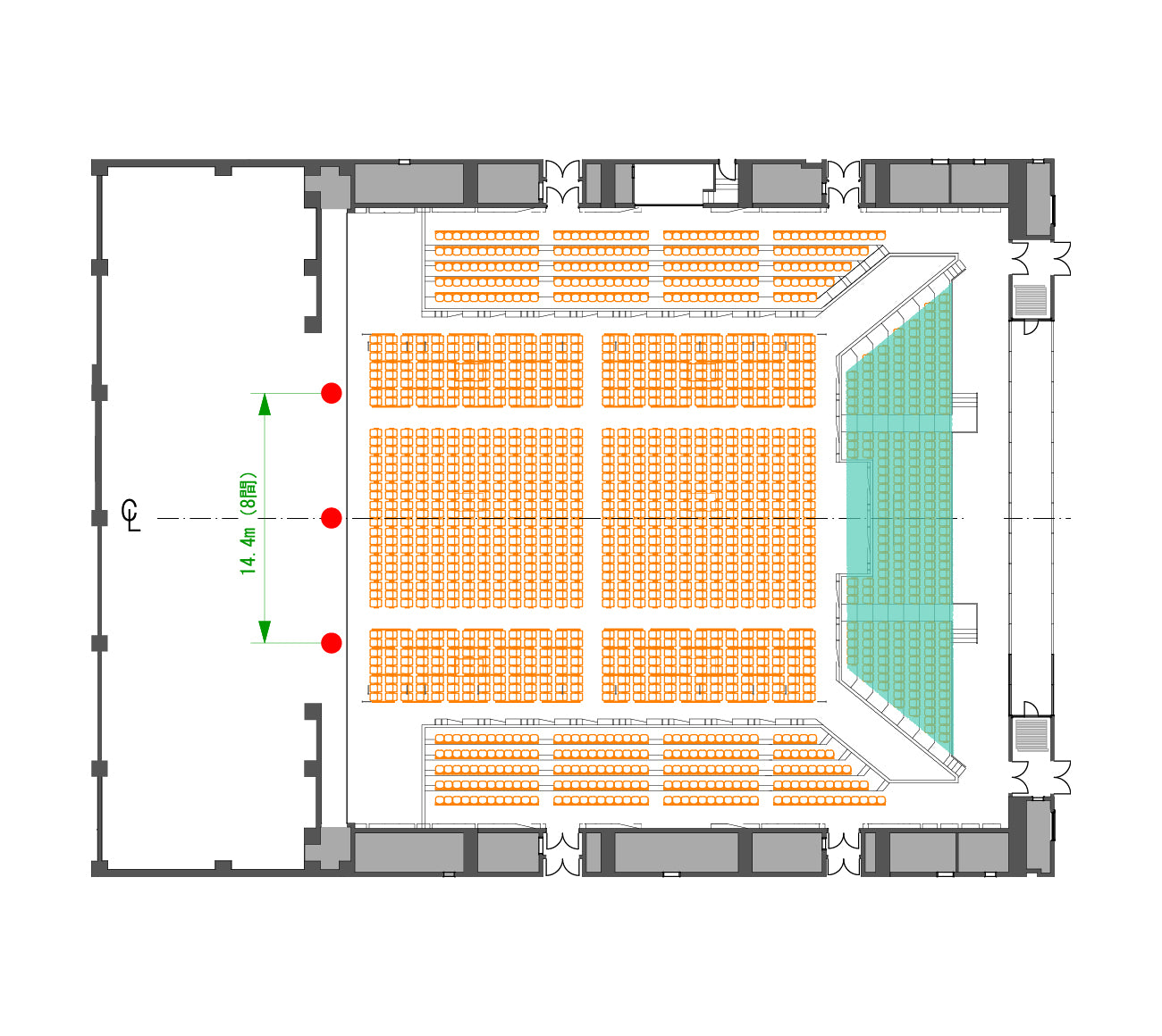 席番号入った紙チケットをGW明けの5月10日ごろに発送します。2階席のエメラルドグリーンに塗った230席から、FRUEで指定します。